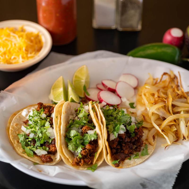 Four potato and chorizo tacos deep fried served with lettuce, sour cream, queso fresco and pico de gallo.